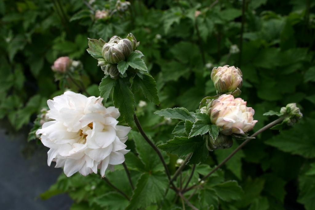 Placering: Halvskygge - i alm. havejord. Blomstring: August-oktober Farve: hvidrosa/fyldt Højde: 90 cm Anvendelse: i staudebedet, solitært, afskæring. Antal pr. m2: 6 Staudegaarden på Fyn har fremavlet denne helt specielle og unikke, blomsterrige, fyldte Anemone. Den har både en helt særlig knopsætning, men også en helt speciel udformning af knopperne og deres placering. Blomstrer i flere niveauer - nærmest etage-lignende og med side-knopper på hovedknopperne. De mange - og meget fyldige - knopper starter ud i laksrosa for at ende op i de store, næsten helt hvide, fyldte blomster. Ved faldende temperaturer går blomstringen igen mod det rosa.
